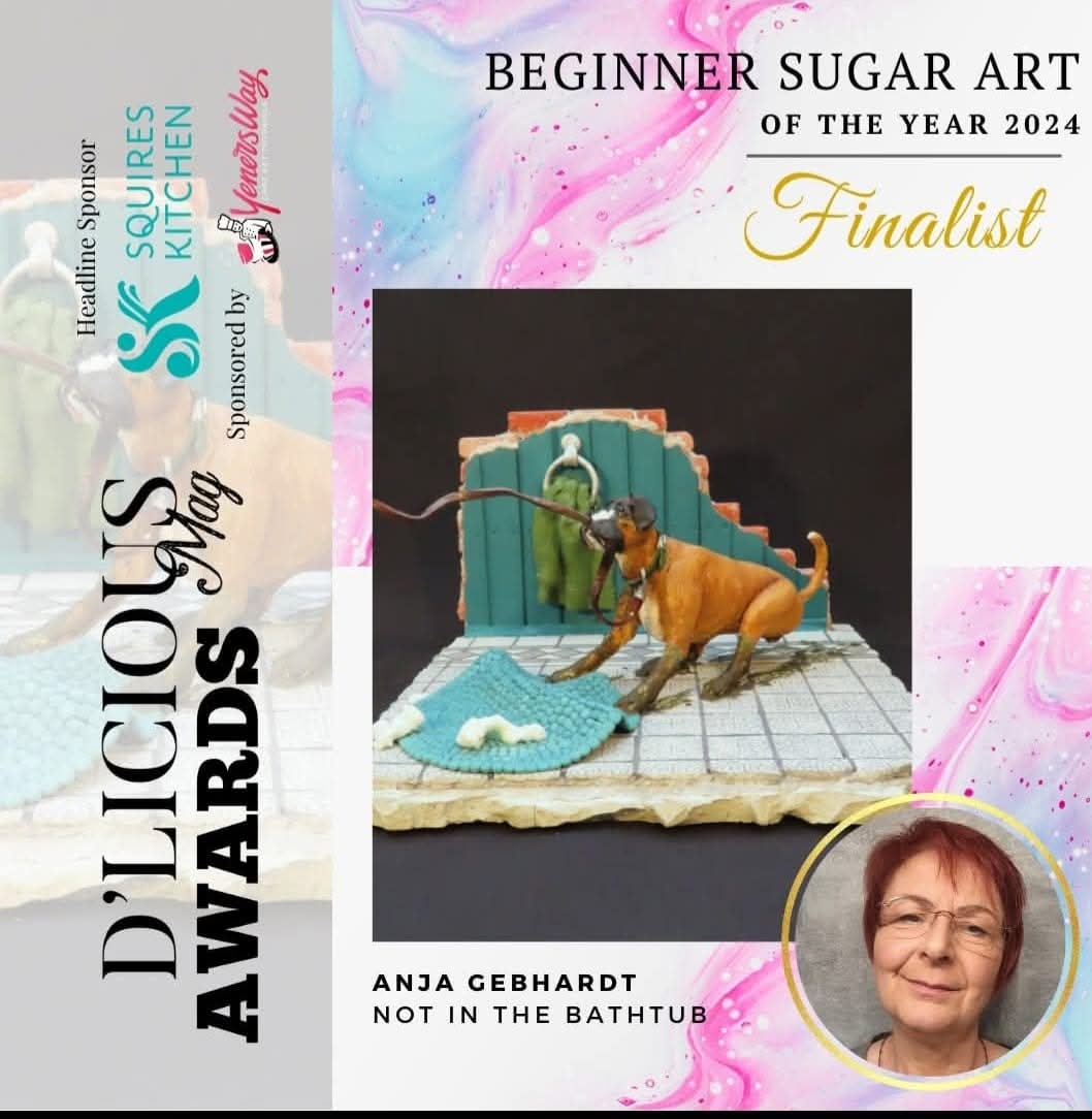 Mein Name ist Anja Gebhardt, ich wurde 1968 geboren, bin verheiratet und wohne bei Gilserberg, ca. 120 km nördlich von Frankfurt am Main. Meine ersten Fondant-Torte habe ich zur Hochzeit meiner besten Freundin vor ca. 30 Jahren gemacht. Da es damals ja noch keine Online-Shops und Tutorials gab war das ein riesige Aktion und ich war dann auch erstmal bedient. Im Laufe der Jahre kehrte dann aber das Interesse zurück und ich nahm an kleinen Workshops teil. Durch meine Arbeit als OP-Schwester blieb aber wenig Energie für kreative Projekte. Als ich dann aber berufsunfähig wurde entflammte langsam wieder das Interesse und nach meiner ersten Teilnahme bei der cake & bake Dortmund 2024 ist die Zuckerwelt vollends zu meiner Leidenschaft geworden. Als glücklicher Umstand sind mir in meinem Leben immer wieder englisch sprechende Menschen begegnet und somit bietet sich jetzt für mich diese außergewöhnliche Möglichkeit als Übersetzer diesen tollen Verein unterstützen zu können. Ich freue mich darauf dabei noch ganz viel zu lernen und auch noch ganz viele nette Menschen kennenzulernen, die meine Leidenschaft teilen. Auszeichnungen: cake and bake 2024 Gold und zweiter Platz Steampunk cake international 2024 Bronze DMA Awards 2024 Finalist sugar artists of the Year beginners cake &bake 2025 Bronze